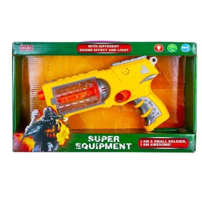 Distractie 100 pentru copii si parinti cu un pistol de politie care emite sunete si lumini realistice. Caracteristici - Pistolul modern de politie confectionat din material plastic de calitate - Pistolul emite sunete si lumini - Functioneaza cu 3 baterii AA 1 5 V neincluse - Lungime pistol 24 cm - Incurajeaza jocurile de rol si imaginatia Avertizare Produsul este nou si comercializat in ambalajul original al producatorului. Imaginile de pe acest site au caracter informativ. Ambalajul trebuie indepartat recuperat si aruncat de catre un adult inainte de a se da spre utilizare copilului. Nu lasati ambalajele produselor la indemana copiilor. Se recomanda utilizarea produsului sub supravegherea unui adult. Produsul poate contine piese mici care se pot inghiti sau inhala de cei mici existand pericolul de sufocare sau nu este potrivita copiilor mai mici de 3 ani. Pastrati instructiunile si etichetele pentru referinte viitoare. Pastrati produsul departe de foc si nu il lasati in preajma temperaturilor ridicate si a umiditatii. Nerecomandat copiilor cu varsta mai mica de 6 aniSpecificatii