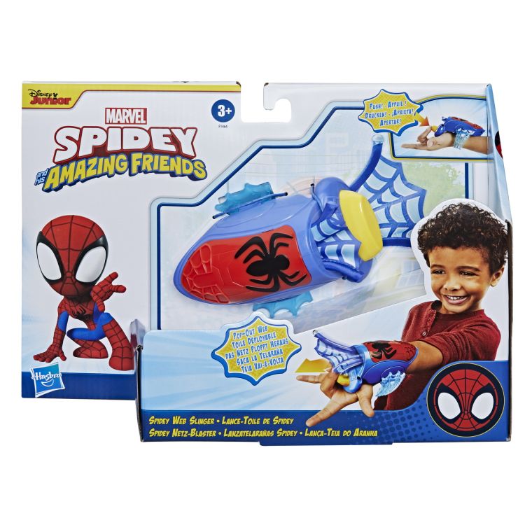 Apasati butonul mare de pe Spidey Web Slinger si panza se va extinde. Panza de paianjen se retrage atunci cind butonul este eliberat, facilitind redarea fara a fi nevoie de piese sau asamblare.