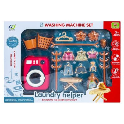 Cu ajutorul masinii de spalat copiii pot invata cum se spala hainele si cat de importanta este curatenia. Este astfel o jucarie perfecta pentru copilasi. Caracteristici - Setul contine masina de spalat suportul pentru haine 2 cosuri de rufe 1 umeras 5 hainute fier de calcat recipient pentru detergent masa de calcat. - Masina de spalat are buton ce se rasuceste si usa ce se deschide copiii putand introduce hainutele papusilor in interior. - Suportul pentru haine necesita asamblare. - Pe langa faptul ca este grozav si distractiv jocul cu acest produs este o modalitate excelenta de a dezvolta abilitatile motorii inteligenta dexteritatea si coordonarea ochi-mana. - Jucaria este confectionata din plastic rezistent non-toxic. - Jucaria este ambalata in cutie din carton cu fereastra. Dimensiune masina de spalat 12. 3x8. 5x7 cm Avertizare Aceasta jucarie contine piese mici. In cazul putin probabil al inghitirii unor astfel de piese consultati de urgenta un specialist. Produsul este nou si comercializat in ambalajul original al producatorului. Imaginile de pe site au caracter informativ. Ambalajul trebuie indepartat recuperat si aruncat de catre un adult inainte de a se da spre utilizare copilului. Nu lasati ambalajele produselor la indemana copiilor. Se recomanda utilizarea produsului sub supravegherea unui adult. Produsul poate contine piese mici care se pot inghiti sau inhala de cei mici existand pericolul de sufocare sau nu este potrivita copiilor mai mici de 3 ani. Pastrati instructiunile si etichetele pentru referinte viitoare. Pastrati produsul departe de foc si nu il lasati in preajma temperaturilor ridicate si a umiditatii. Datorita masurarii manuale a produsului poate exista o diferenta minora fata de dimensiunea reala a produsului.Specificatii