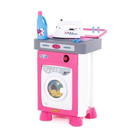 Cu ajutorul masinii de spalat copiii pot invata cum se spala hainele si cat de importanta este curatenia. Este astfel o jucarie perfecta pentru copilasi. Caracteristici - Setul Carmen include masina de spalat panou de joc cu o suprafata din material textil pentru calcat fier uscator de haine franghie pentru uscator recipient pentru detergent 4 cleme pentru rufe. - Deschiderea si inchiderea usii masinii de spalat este insotita de un semnal sonor. Dupa selectarea modului de spalare tamburul incepe sa se roteasca si se aude un sunet simuland functionarea masinii de spalat. - Toate elementele setului sunt cat se poate de realiste si imita electrocasnicele si accesoriile de curatenie. - In partea din spate a masinii de spalat este un uscator pentru intinderea lenjeriei deja spalate . - Setul aduce copiilor un sentiment de independenta ii invata sa fie gospodari dezvolta imaginatia coordonarea si abilitatile motorii. - Masina functioneaza cu 3 baterii R14 incluse. Bateriile se introduc in spatiul destinat in pozitia corecta respectandu-se polaritatea numai de catre adulti. Compartimentul bateriilor trebuie sa fie curat. Bateriile epuizate se schimba si se recicleaza conform normelor in vigoare. In cazul neutilizarii jucariei pentru mai mult timp se scot bateriile pana in momentul refolosirii. - Jucaria este confectionata din plastic rezistent non-toxic. - Jucaria este ambalata in folie. Dimensiune masina de spalat cu uscator 45x31x60 cm Avertizare Aceasta jucarie contine piese mici. In cazul putin probabil al inghitirii unor astfel de piese consultati de urgenta un specialist. Produsul este nou si comercializat in ambalajul original al producatorului. Imaginile de pe site au caracter informativ. Ambalajul trebuie indepartat recuperat si aruncat de catre un adult inainte de a se da spre utilizare copilului. Nu lasati ambalajele produselor la indemana copiilor. Se recomanda utilizarea produsului sub supravegherea unui adult. Produsul poate contine piese mici care se pot inghiti sau inhala de cei mici existand pericolul de sufocare sau nu este potrivita copiilor mai mici de 3 ani. Pastrati instructiunile si etichetele pentru referinte viitoare. Pastrati produsul departe de foc si nu il lasati in preajma temperaturilor ridicate si a umiditatii. Datorita masurarii manuale a produsului poate exista o diferenta minora fata de dimensiunea reala a produsului.Specificatii