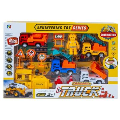 Cu acest play set constructii copilul are satisfactia de a se juca cu o jucarie construita de el ca apoi sa inventeze tot felul de jocuri de rol jocuri in care este constructor sau sofer. Caracteristici - Setul contine 1 figurina constuctor 1 camion betoniera 1 camion macara 1 camion excavator 1 camion basculanta 4 indicatoare rutiere si 2 jaloane. - Camioanele au frictiune pull back pe rotile din spate. - Masinile au erse oportunitati de joaca betoniera are cuva rotativa macaraua si excavatorul au cabina rotativa si brat ce se ridica coboara basculanta are remorca ce se ridica coboara. - Figurina poate tine in maini unelte nu sunt incluse . - Datorita designului detaliat ersitatii pieselor si materialului - plastic rezistent jucaria va fi utilizata mult timp de catre copii. - Jucaria este excelenta pentru dezvoltarea simturilor si a dexteritatii. Copiii isi vor imbunatati abilitatile motrice coordonarea ochi-mana inteligenta si imaginatia in timp ce se joaca. - Play set-ul este amblalat in cutie din carton cu fereastra si maner din plastic. Dimensiuni camioane betoniera 9x4x5. 5 cm excavator 9. 5x4. 5x6 cm macara 9. 5x6x4. 5 cm basculanta 9x5x4. 2 cm Dimensiune cladire 12. 2x8x2 cm Dimensiune figurina 8. 8x4. 5x2. 2 cm Avertizare Produsul este nou si comercializat in ambalajul original al producatorului. Imaginile de pe acest site au caracter informativ. Ambalajul trebuie indepartat recuperat si aruncat de catre un adult inainte de a se da spre utilizare copilului. Nu lasati ambalajele produselor la indemana copiilor. Se recomanda utilizarea produsului sub supravegherea unui adult. Produsul poate contine piese mici care se pot inghiti sau inhala de cei mici existand pericolul de sufocare sau nu este potrivita copiilor mai mici de 3 ani. Pastrati instructiunile si etichetele pentru referinte viitoare. Pastrati produsul departe de foc si nu il lasati in preajma temperaturilor ridicate si a umiditatii. Datorita masurarii manuale a produsului poate exista o diferenta minora fata de dimensiunea reala a produsului.Specificatii