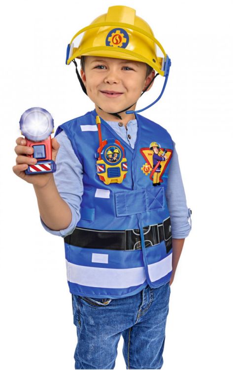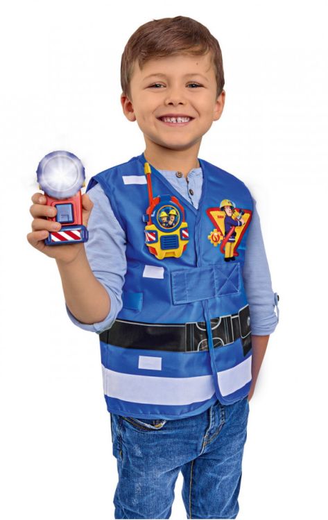 Cu setul de interventie, copiii se pot imagina in rolul pompierului si isi pot recrea propriile misiuni si aventuri din serie. Vesta albastra se imbraca rapid si se poate inchide cu Velcro. Pe piept este un motiv cool Fireman Sam. Pentru ca pompierii sa poata merge la operatiuni chiar si pe intuneric, setul are o lanterna. Aceasta are 11 cm inaltime. Cu walkie-talkie de 14 cm poti apela rapid si comunica cu colegii tai. Echipamentul poate fi legat sau atasat de vesta.