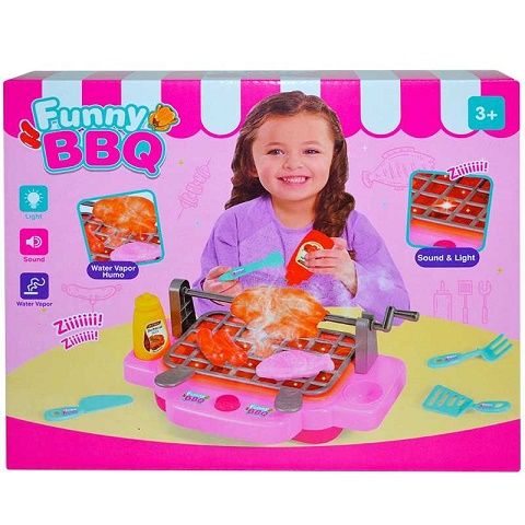 Set barbeque cu lumina si sunet perfect pentru joaca de-a maestrul bucatar. Emuleaza foarte bine realitatea. Caracteristici - Setul contine grilul ce se asambleaza din 5 piese 1 pui 1 peste 1 set cu 2 carnati 1 sticla ketchup 1 sticla mustar 1 recipient gradat 1 cutit 1 furculita 1 cleste 1 paleta 1 folie cu autocolante. - Grilul emite sunete lumini si vapori. - Setul contine ustensile pentru grill cat si recipiente ce emuleaza recipientele de sos de tomate sau mustar. - Functioneaza cu 3 baterii tip AA 1 5 V neincluse in set . Bateriile se introduc in spatiul destinat in pozitia corecta respectandu-se polaritatea. Compartimentul bateriilor trebuie sa fie curat. Bateriile epuizate se schimba si se recicleaza conform normelor in vigoare. In cazul neutilizarii jucariei pentru mai mult timp se scot bateriile pana in momentul refolosirii. - Jucaria este realizata din plastic de calitate non-toxic. - Cu aceasta jucarie copiii se pot simti bucatari adevarati si vor fi incantati sa prepare mancaruri delicioase singuri sau impreuna cu prietenii astfel isi vor imbunatatii dexteritatea si imaginatia si isi vor cultiva abilitatile sociale. - Ambalaj cutie din carton. Dimensiune gril 25x16. 5x11. 5 cm Avertizare Produsul este nou si comercializat in ambalajul original al producatorului. Imaginile de pe acest site au caracter informativ. Ambalajul trebuie indepartat recuperat si aruncat de catre un adult inainte de a se da spre utilizare copilului. Nu lasati ambalajele produselor la indemana copiilor. Se recomanda utilizarea produsului sub supravegherea unui adult. Produsul poate contine piese mici care se pot inghiti sau inhala de cei mici existand pericolul de sufocare sau nu este potrivita copiilor mai mici de 3 ani. Pastrati instructiunile si etichetele pentru referinte viitoare. Pastrati produsul departe de foc si nu il lasati in preajma temperaturilor ridicate si a umiditatii. Datorita masurarii manuale a produsului poate exista o diferenta minora fata de dimensiunea reala a produsului.Specificatii