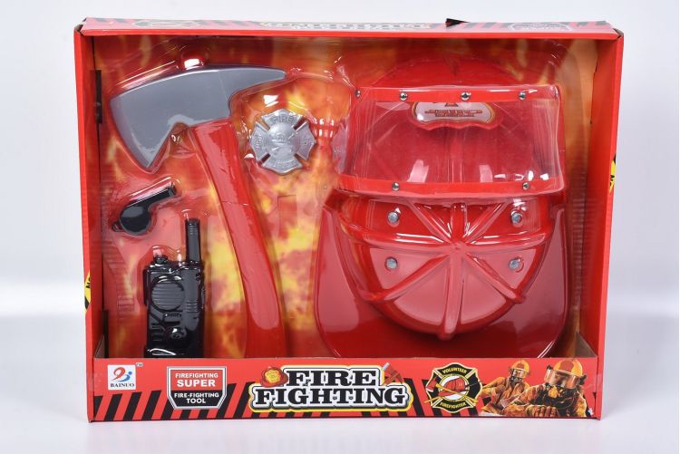 In set sunt incluse multe unelte de ajutor in joaca micului pompier. Casca de protectie, topor de jucarie, insigna, statie de comunicatie si un fluier, toate sunt incluse. Formele speciale si culorile vii incurajeaza copilul sa exerseze si sa se joace stimuland astfel dezvoltarea individuala. Este un adevarat tratament pentru baietii creativi si pasionati de activitatea pompierilor.
