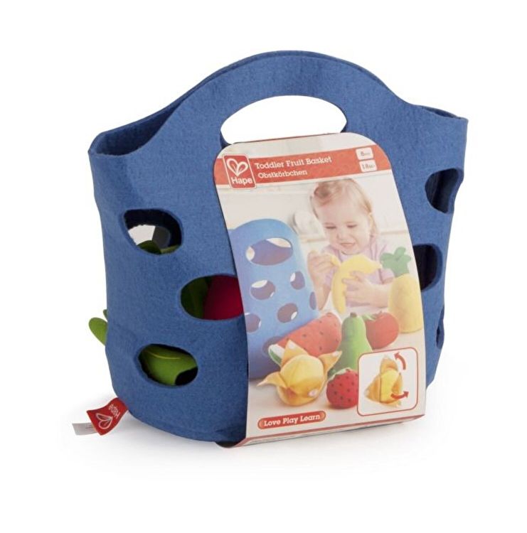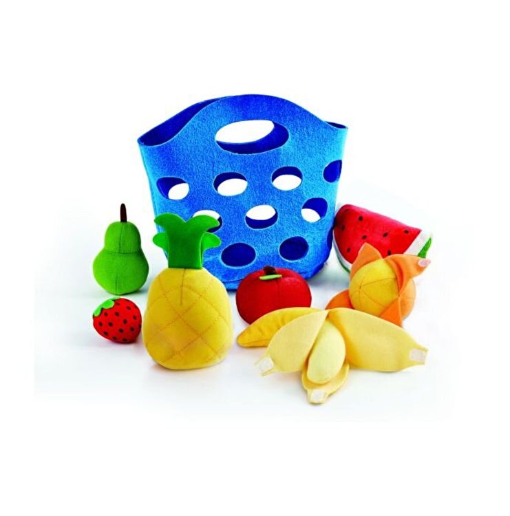 Umple acest cos moale, din fetru, cu sapte bucati din fructele tale preferate. Curatati banana si portocala si imparte-le prietenilor! Confectionat din tesaturi moi pentru degetele bebelusilor pe care sa le prinda si sa le tina. Cosul din pasla este moale si sigur pentru bebelusi. Fructele sunt fabricate din tesatura moale, spongioasa. Include un ananas, o banana, o capsuna, o felie de pepene verde, un mar, o para si o portocala. Banana si portocala se pot curata incurajeaza jocul de rol si alimentatia sanatoasa.