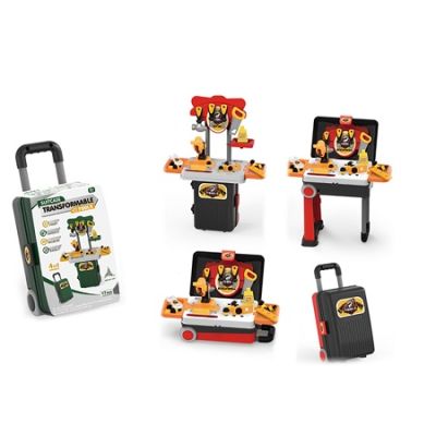 Jucaria ii va antrena pe cei mici in cele mai distractive momente putand sa se transpuna in rolul de mester harnic. Caracteristici - jucaria este confectionata din material plastic - jucaria contine troller ce se transforma in blat de lucru fierastrau circular firez surubelnita cu cap drept surubelnita cu cap stea cheie 6 suruburi cu piulita ciocan 4 piese de prindere bidon folie cu abtibilduri - dimensiuni blat de lucru 53x37x13 cm - jucaria este conceputa pentru multa distractie intre prieteni - jocul incurajeaza motricitatea indemanarea coordonarea ochi-mana si jocurile de rol Avertizare Produsul este nou si comercializat in ambalajul original al producatorului. Imaginile de pe acest site au caracter informativ. Produsul nu functioneaza cu baterii. Nuanta tonul si intensitatea culorii pot varia in functie de monitor. Ambalajul trebuie indepartat recuperat si aruncat de catre un adult inainte de a se da spre utilizare copilului. Nu lasati ambalajele produselor la indemana copiilor. Se recomanda utilizarea produsului sub supravegherea unui adult. Produsul poate contine piese mici care se pot inghiti sau inhala de cei mici existand pericolul de sufocare sau nu este potrivita copiilor mai mici de 3 ani. Pastrati instructiunile si etichetele pentru referinte viitoare. Pastrati produsul departe de foc si nu il lasati in preajma temperaturilor ridicate si a umiditatii. Nerecomandat copiilor cu varsta mai mica de 3 aniSpecificatii