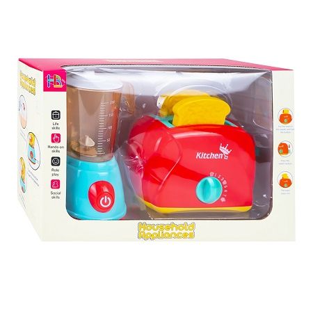 Ustensile bucatarie - blender si prajitor de paine viu colorate care ii vor incanta pe copii si ii va transforma in mici bucatari iscusiti si pasionati. Caracteristici - Aparatele electrocasnice de jucarie sunt confectionate din material plastic. - Setul contine un blender un prajitor de paine si 2 felii de paine. - Blenderul are recipient detasabil lumini sunet ce imita realitatea si rotatie a mixerului. - Prajitorul are maneta si un temporizator care face ca feliile de paine sa sara in sus la un anumit interval de timp. - Blenderul functioneaza cu 2 baterii tip AA 1 5 V neincluse . Bateriile se introduc in pozitia corecta respectandu-se polaritatea. Compartimentul bateriilor trebuie sa fie curat. Bateriile epuizate se schimba si se recicleaza conform normelor in vigoare. In cazul neutilizarii jucariei pentru mai mult timp se scot bateriile pana in momentul refolosirii. - Cu aceste aparate electrocasnice copiii se pot simti ca intr-o bucatarie adevarata si vor fi incantati sa prepare un mic dejun sanatos singuri sau impreuna cu prietenii astfel isi vor imbunatatii dexteritatea si imaginatia si isi vor cultiva abilitatile sociale. - Jucaria este ambalata in cutie din carton cu fereastra. Dimensiune aparate electrocasnice blender - 19. 5x13x10. 5 cm prajitor - 18. 5x12. 2x7. 5 cm Dimensiune felie de paine 7. 8x7. 5x1 cm Avertizare Produsul este nou si comercializat in ambalajul original al producatorului. Imaginile de pe site au caracter informativ. Ambalajul trebuie indepartat recuperat si aruncat de catre un adult inainte de a se da spre utilizare copilului. Nu lasati ambalajele produselor la indemana copiilor. Se recomanda utilizarea produsului sub supravegherea unui adult. Produsul poate contine piese mici care se pot inghiti sau inhala de cei mici existand pericolul de sufocare sau nu este potrivita copiilor mai mici de 3 ani. Pastrati instructiunile si etichetele pentru referinte viitoare. Pastrati produsul departe de foc si nu il lasati in preajma temperaturilor ridicate si a umiditatii. Datorita masurarii manuale a produsului poate exista o diferenta minora fata de dimensiunea reala a produsului.Specificatii