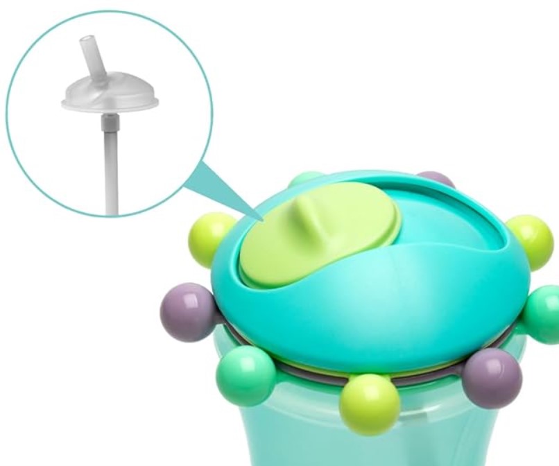 Experimentati nota jucausa pe care o aduce Melii cu noile cani cu pai Abacus in culoare albastra Nu este doar un pahar este o jucarie distractiva care il va tine pe copilul dumneavoastra distras. Ei se pot bucura de invartit numarat si interactionat cu margelele viu colorate fixate pe acest capac inovator. Conceput pentru utilizare atat acasa cat si in miscare aceste cani au o forma ergonomica pentru mainile mici promovand independenta copilului. Ideal pentru utilizare acasa si in miscare aceste cani cu pai au un design prietenos. Sunt echipate cu capac cu clapeta rezistent la scurgeri si pai flexibil din silicon pentru a asigura curatenia si prevenirea scurgerilor. Paiul durabil este moale si delicat cu gingiile si dintii copilului. ANTI-SCURGERE Cana cu pai Abacus se inchide ermetic este antipicurare si dispune de un capac cu clapeta care mentine paiul flexibil din silicon curat in timpul deplasarilor. SIGUR Plastic 100 sigur pentru alimente fara BPA plumb cadmiu PVC UTILIZARE INDEPENDENTA Cana este proiectata pentru o prindere usoara in mainile mici incurajand pe cei mici sa bea independent fara prea multa mizerie JUCARIE PORTABILA - Excelent pentru deplasari si nu doar un cana obisnuita - copilul tau se va distra invartind numarand margelele si invatand culorile. USOR DE CURATAT Se poate spala in masina de spalat vase pe raftul superior. Capacitate 340 ml ialtime 7 50 cm Diametru 12 5 cmSpecificatii