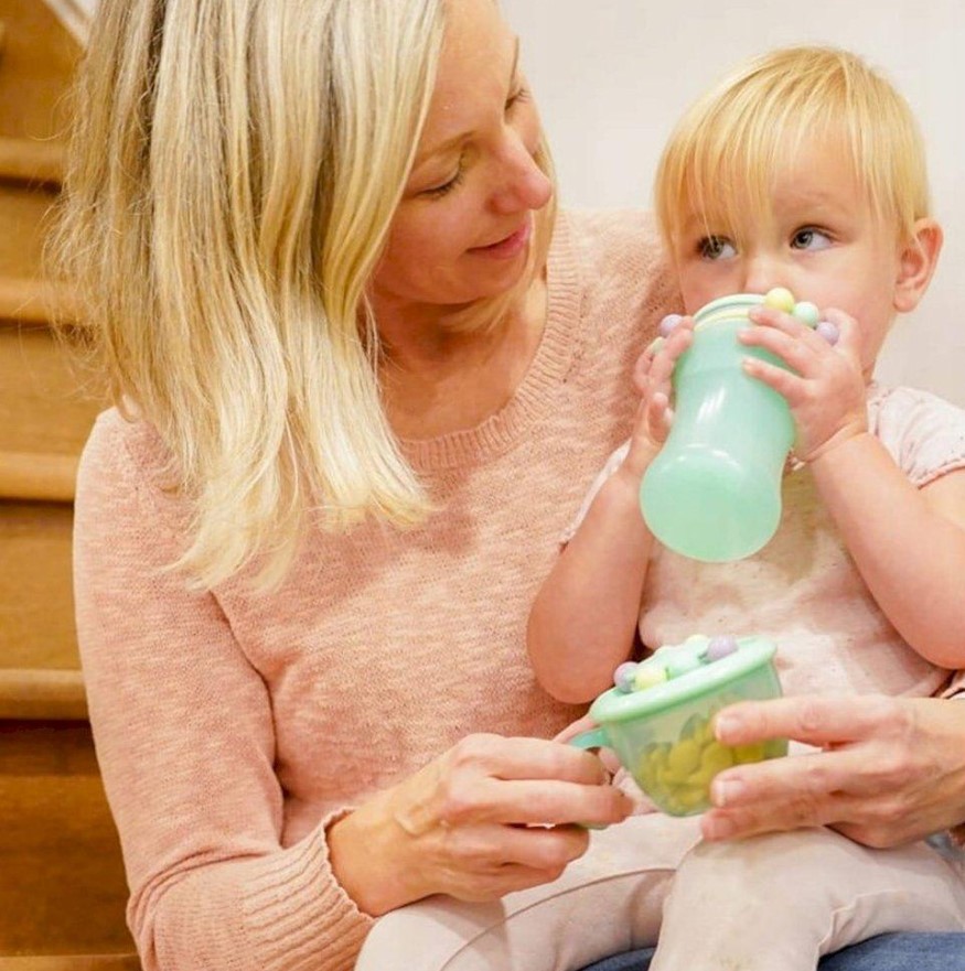 Experimentati nota jucausa pe care o aduce Melii cu noile cani cu pai Abacus in culoare verde mint Nu este doar un pahar este o jucarie distractiva care il va tine pe copilul dumneavoastra distras. Ei se pot bucura de invartit numarat si interactionat cu margelele viu colorate fixate pe acest capac inovator. Conceput pentru utilizare atat acasa cat si in miscare aceste cani au o forma ergonomica pentru mainile mici promovand independenta copilului. Ideal pentru utilizare acasa si in miscare aceste cani cu pai au un design prietenos. Sunt echipate cu capac cu clapeta rezistent la scurgeri si pai flexibil din silicon pentru a asigura curatenia si prevenirea scurgerilor. Paiul durabil este moale si delicat cu gingiile si dintii copilului. ANTI-SCURGERE Cana cu pai Abacus se inchide ermetic este antipicurare si dispune de un capac cu clapeta care mentine paiul flexibil din silicon curat in timpul deplasarilor. SIGUR Plastic 100 sigur pentru alimente fara BPA plumb cadmiu PVC UTILIZARE INDEPENDENTA Cana este proiectata pentru o prindere usoara in mainile mici incurajand pe cei mici sa bea independent fara prea multa mizerie JUCARIE PORTABILA - Excelent pentru deplasari si nu doar un cana obisnuita - copilul tau se va distra invartind numarand margelele si invatand culorile. USOR DE CURATAT Se poate spala in masina de spalat vase pe raftul superior. Capacitate 340 ml ialtime 7 50 cm Diametru 12 5 cmSpecificatii
