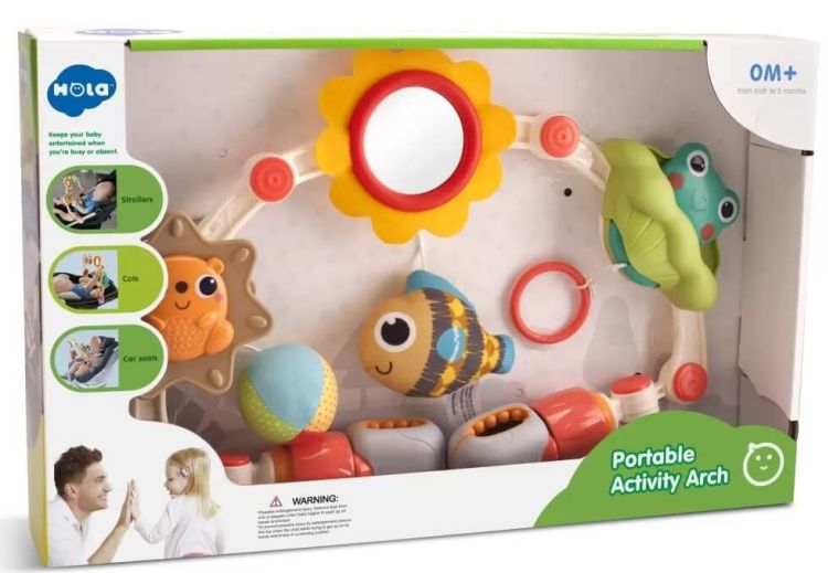 Caruselul portabil arcuit educativ este o jucarie minunata conceputa pentru a distra si calma copilul in timpul plimbarilor sau calatoriilor lungi. Puteti schimba cu usurinta pozitia si unghiul jucariei in raport cu copilul. Arcul se ataseaza cu usurinta cu ajutorul unor cleme speciale de fixare oriunde la un carucior un pat un scaun auto etc.Specificatii