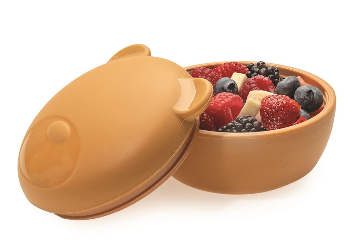 Imbogateste momentele petrecute la masa de copilul tau cu Bolul din Silicon Meliimodel Animal echipat cu capac in forma de urs. Acest container de mancare fermecator si prietenos cu copiii nu adauga doar o nota distractiva ci este si practic. Confectionat din silicon de cea mai inalta calitate adecvat pentru alimente ofera durabilitate flexibilitate si intretinere usoara fiind in acelasi timp usor si potrivit pentru masina de spalat vase pe raftul superior. Transforma timpul mesei intr-o aventura cu acest recipient pentru mancare perfect ca dimensiune pentru copii si rezistent la scurgeri Bolul din Silicon Meliimodel Animal -urs este ideal pentru erse utilizari de la potrivirea perfecta in cutiile de pranz pana la depozitarea resturilor de mancare gustari mese si multe altele. Creat pentru a rezista la caderi accidentale si la joaca energica toate acestea intr-o constructie usoara facandu-l usor de purtat de catre copilul tau in jurul lor cu snack-urile preferate mereu la indemana. DURABIL - Perfect pentru acasa sau in deplasare containerele noastre cu animale sunt durabile si usoare realizate din silicon alimentar de inalta calitate. Containerul din silicon sigileaza cu un capac cu insurubare - componentele capacului sunt realizate din nylon rezistent la temperaturi ridicate. ANTI-SCURGERE - Containerul nostru de 350 ml are un capac antiscurgere care sigileaza prospetimea si ajuta la prevenirea dezastrului USOR DE UTILIZAT - Realizat din silicon alimentar de inalta calitate acest bol cu capac este durabil flexibil usor ideal pentru utilizare in cutiile de pranz depozitarea usoara a resturilor de mancare gustari mese si altele. USOR DE CURATAT - Poate fi curatat in masina de spalat vase pe raftul superior. FaRa BPA fara plumb fara cadmiu si fara PVC.Specificatii