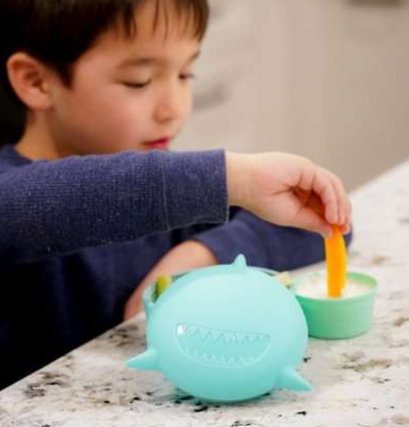 Facem hranirea independenta a copiilor sa fie o distractie cu seturile noastre de castronele din silicon cu capac animal si tacamuri Melii in culorile vibrante ale bulldogului pisicii rechinului si ursului Aceste ustensile distractive si captivante nu numai ca ii tin pe cei mici incantati dar si sustin hranirea independenta si dezvoltarea abilitatilor motorii fine chiar daca acestia sfarsesc acoperiti de piure de mere din cap pana la picioare. Castronelul este confectionat din silicon de cea mai inalta calitate adecvat pentru alimente durabil flexibil si usor de intretinut fiind in acelasi timp usor si potrivit pentru masina de spalat vase pe raftul superior. Transforma timpul mesei intr-o aventura cu acest recipient pentru mancare perfect ca dimensiune pentru copii si rezistent la scurgeri cu Bolul din Silicon Meliimodel Animal -rechin este ideal pentru erse utilizari de la potrivirea perfecta in cutiile de pranz pana la depozitarea resturilor de mancare gustari mese si multe altele. Creat pentru a rezista la caderi accidentale si la joaca energica toate acestea intr-o constructie usoara facandu-l usor de purtat de catre copilul tau in jurul lor cu snack-urile preferate mereu la indemana. DURABIL - Perfect pentru acasa sau in deplasare containerele noastre cu animale sunt durabile si usoare realizate din silicon alimentar de inalta calitate. Containerul din silicon sigileaza cu un capac cu insurubare - componentele capacului sunt realizate din nylon rezistent la temperaturi ridicate. ANTI-SCURGERE - Containerul nostru de 350 ml are un capac antiscurgere care sigileaza prospetimea si ajuta la prevenirea dezastrului USOR DE UTILIZAT - Realizat din silicon alimentar de inalta calitate acest bol cu capac este durabil flexibil usor ideal pentru utilizare in cutiile de pranz depozitarea usoara a resturilor de mancare gustari mese si altele. USOR DE CURATAT - Poate fi curatat in masina de spalat vase pe raftul superior. FaRa BPA fara plumb fara cadmiu si fara PVC.Specificatii