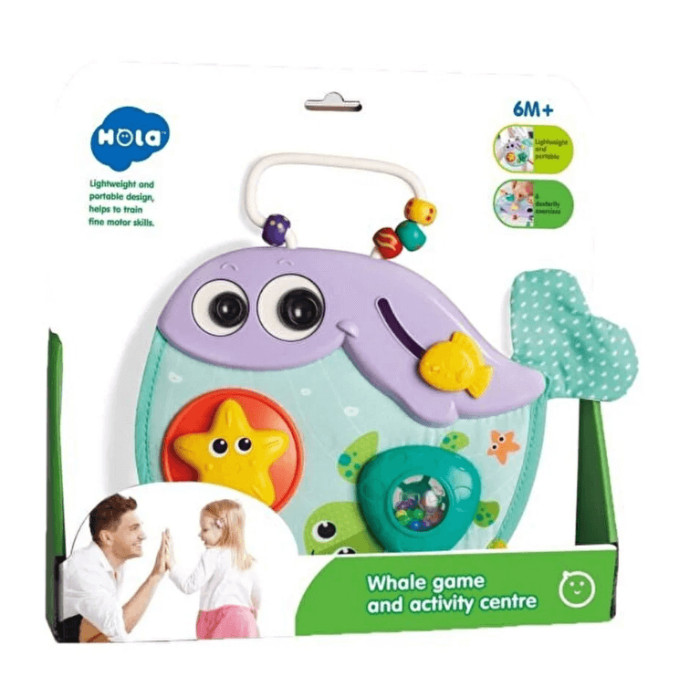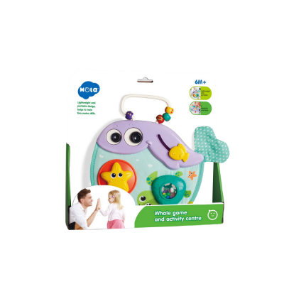 Centru de activitati in forma de balenuta. Aceasta balena uimitoare de activitate este plina de functii pentru ca copilul sa se distreze jucandu-se si invatand. Aceasta jucarie de activitate va stimula curiozitatea de a imbunatati imaginatia si creativitatea, imbunatatind, de asemenea, gandirea logica si abilitatile de rezolvare a problemelor. Componente precum impingerea, tragerea, prinderea sau intoarcerea pentru a imbunatati dexteritatea degetelor si a mainii, coordonarea ochi-mana si abilitatile motorii fine. Jucarie recomandat copiilor mai mari de 6 luni.