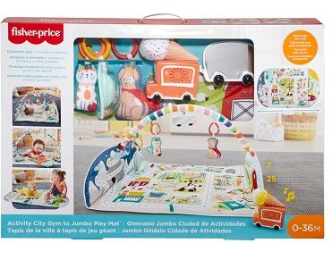 Pe covorasul cu activitati al bebelusului tau cainii si pisicile sunt jucarii zornaitoare iar vehiculele stralucitoare zboara pe cer. Un panda si un lenes sunt prieteni de antrenament ai bebelusului iar un camion de inghetata reda pana la 25 de minute de muzica. Covorul cu activitati Distractie in oras de la Fisher-Price ofera mai mult de 1 2 metri de spatiu de joaca pentru ca bebelusul dvs. sa exploreze pe masura ce creste Vine cu 7 jucarii inclusiv o oglinda de auto-descoperire si jucarii care se ataseaza la bara suspendata deasupra covorasului de joaca plus un camion de inghetata care reda pana la 25 de minute de muzica. Pe masura ce copilul creste covorul de joaca devine cadrul perfect pentru aventuri nesfarsite copiii mici imping piesele de joc prin oras si peste cele mai inalte varfuri inzapezite. Explorarea minunatului oras ajuta la consolidarea abilitatilor motorii brute si fine ale bebelusului precum si la implicarea simturilor lor vizuale auditive si tactile Covorasul de gimnastica pentru copii are o sala amp de joaca foarte mare lavabila in masina de spalat care devine un covor pentru vehicule atunci cand copiii cresc Salteaua de joaca are o lungime de peste 1 2 metri si ofera mult spatiu pentru joc si relaxare dar si pentru timpul petrecut pe burta de catre micutul tau Camionul de inghetata activat prin miscare reda pana la 25 de minute de muzica si lumineaza atunci cand bebelusul il impinge de-a lungul covorasului de joaca Include 7 jucarii inclusiv 3 vehicule 2 animale si 2 piese pentru joc de rol.Specificatii