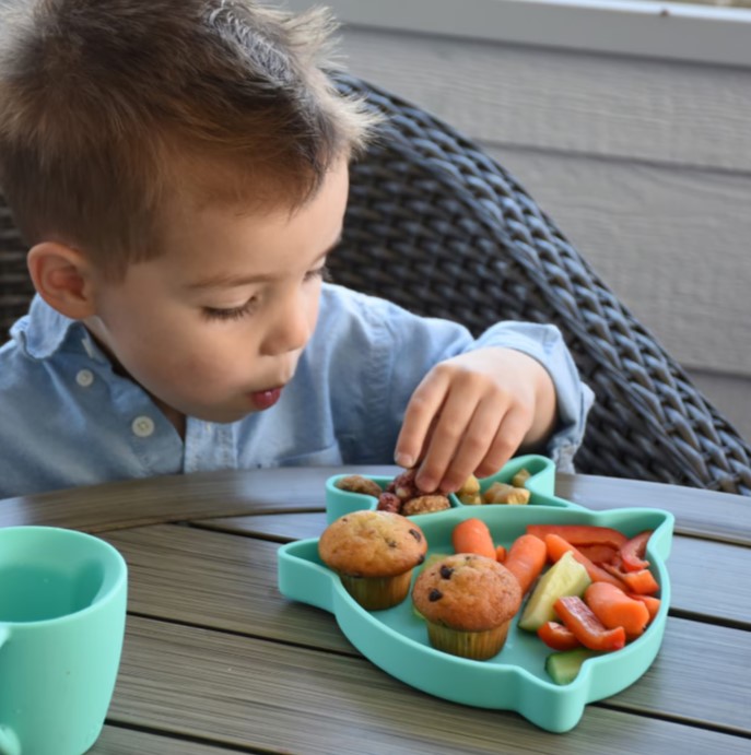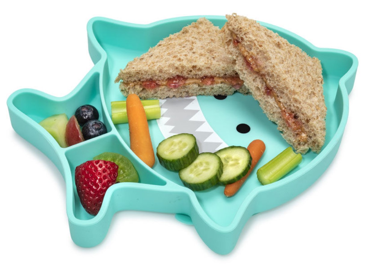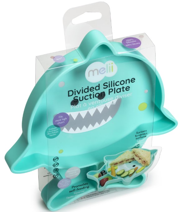 Farfurie compartimentata din silicon cu ventuza model rechin Melii