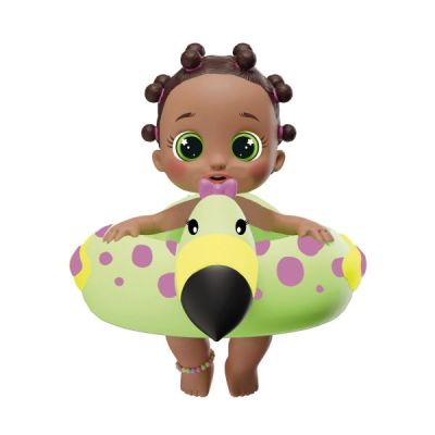 Floaties sunt surorile Bloopies ce au colace dragute in forma de animale pentru a le ajuta sa inoate Cand trageti de firul din spatele colacului si puneti papusa in apa... ea se va misca de parca ar inota cu adevarat in afara de a inota papuselele Floaties stropesc cu apa.Specificatii