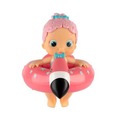 Floaties sunt surorile Bloopies ce au colace dragute in forma de animale pentru a le ajuta sa inoate Cand trageti de firul din spatele colacului si puneti papusa in apa... ea se va misca de parca ar inota cu adevarat in afara de a inota papuselele Floaties stropesc cu apa.Specificatii