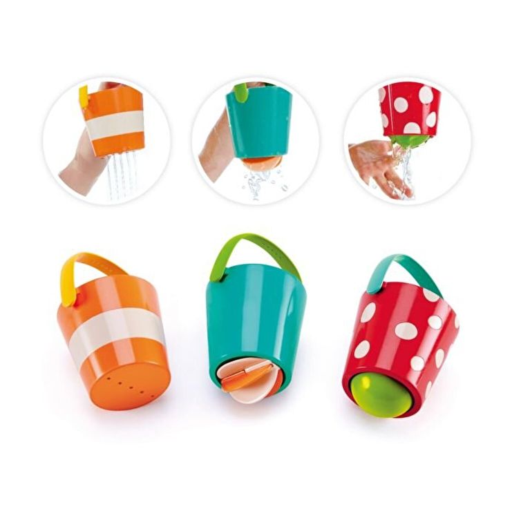 Trei galetuse colorate si vesele care ofera interactiuni distractive. Perfecte pentru joaca cu apa! Umpleti galetusele cu apa si aduceti-va si prietenii pentru o petrecere pe cinste! Setul contine: 3 galetuse colorate deosebit.