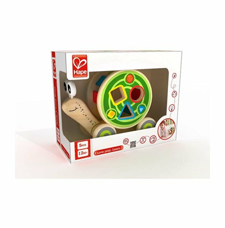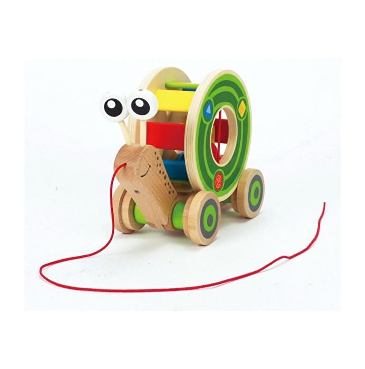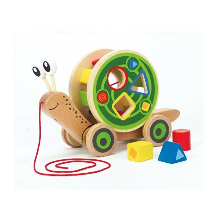 Acest melc multi-tasking transporta o cochilie plina de blocuri de lemn in timp. Descarcati incarcatura indepartand sortatorul colorat de forme si el este gata sa se rostogoleasca singur. Denumiti toate culorile de pe melc si de pe cochilie. Potriveste formele colorate cu lamelele colorate de pe cochilie. Instalati blocuri si trageti melcul prin �labirint". Folositi cuvinte precum �impingeti" si �trageti" pentru a descrie actiunile copilului dvs.