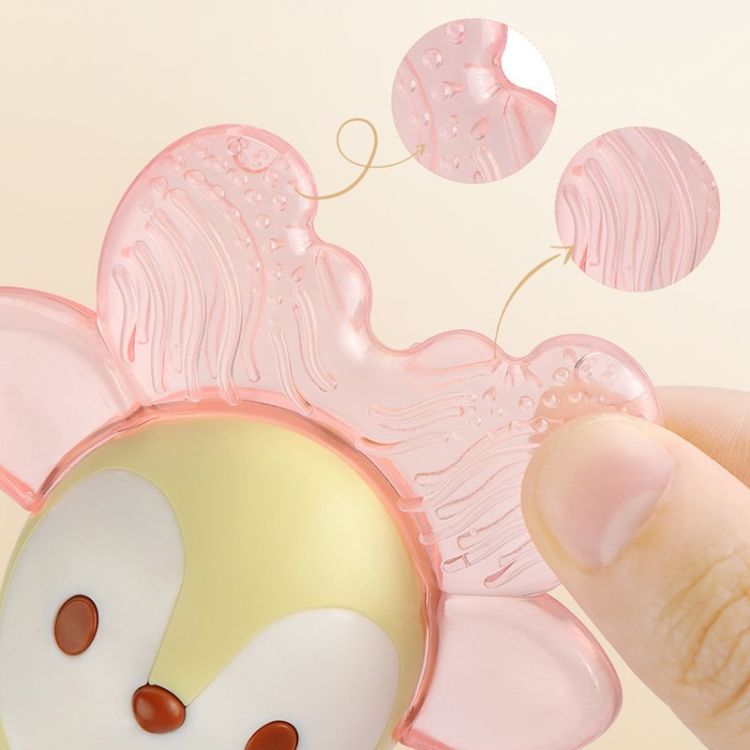 Jucaria in forma de leu poate sa fie racita in frigider pentru o calmare mai rapida a durerilor dentare. Are suprafata texturata. Forma speciala si culorile vii incurajeaza copilul sa exerseze si sa se joace stimuland astfel dezvoltarea iniduala. Nu contine bpa. Este confectionata din materiale sigure si durabile.Specificatii
