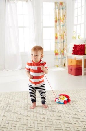 Telefonul prietenos incurajeaza jocul timpuriu pe roluri, bebelusul va deprinde o mutime de beneficii grozave. Cadranul ii prezinta bebelusului cifrele de la 1 la 9 ajutand la exersarea capacitatilor motorii fine. Abilitatile motrice grosiere sunt exersate din pozitia mergand in picioare si tragand de franghiuta jucariei. Culorile intense si sunetele ajuta la stimularea simturilor bebelusului.
