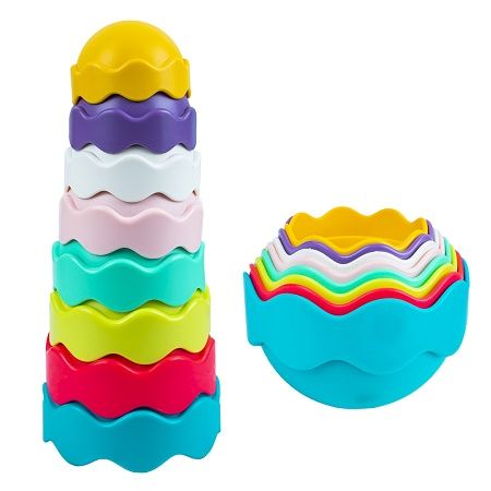 Diferitele dimensiuni culori si forme ala jucariei sunt potrivite pentru antrenamentul de apucare al copiilor. Caracteristici - Kitul include 8 cupe stivuilbile in culori vii diferite. - Partea rotunda a fiecarei cupe are perforatii cu un model diferit pe fiecare cupa. - Setul are diferite moduri de joc utilizati cupele ca jucarie pentru baie cand pot folosite ca pahare din care apa curge si stropeste prin perforatii asociati 2 cupe pentru a forma o minge stivuiti paharele de la mare la mic. - Marginile sunt rotunjite astfel incat sunt sigure atunci cand bebelusul se joaca. - Jucaria pentru baie este realizata din material plastic de inalta calitate non-toxic. - Jucaria incurajeaza motricitatea fina rationamentul spatial explorarea tactila. - Jucaria este ambalata in cutie din carton. Dimensiuni cupa de la 9. 5x9. 5x6 cm la 6x6x3. 5 cm Varsta recomandata 18 luni Avertizare Produsul este nou si comercializat in ambalajul original al producatorului. Imaginile de pe site au caracter informativ. Produsul functioneaza cu baterii. Ambalajul trebuie indepartat recuperat si aruncat de catre un adult inainte de a se da spre utilizare copilului. Nu lasati ambalajele produselor la indemana copiilor. Se recomanda utilizarea produsului sub supravegherea unui adult. Produsul poate contine piese mici care se pot inghiti sau inhala de cei mici existand pericolul de sufocare sau nu este potrivita copiilor mai mici de 3 ani. Pastrati instructiunile si etichetele pentru referinte viitoare. Pastrati produsul departe de foc si nu il lasati in preajma temperaturilor ridicate si a umiditatii. Datorita masurarii manuale a produsului poate exista o diferenta minora fata de dimensiunea reala a produsului.Specificatii