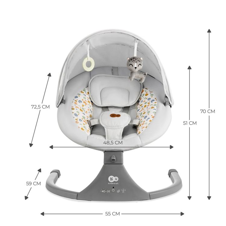 Balansoarul-sezlong electric Kinderkraft LUMI 2 LIGHT GREY este un adevarat ajutor pentru toti parintii. Spre deosebire de majoritatea balansoarelor Kinderkraft LUMI 2 LIGHT GREY il leagana lateral pe copil - aceasta miscare aminteste de leganatul natural si delicat al copilului pentru a adormi ca si cum ar fi in bratele tale. Kinderkraft LUMI 2 LIGHT GREY le ofera celor mici sentimentul de siguranta - atat in casa cat si in calatorie. Este un balansoar usor pe care il iei cu tine in vacanta. Kinderkraft LUMI 2 LIGHT GREY imbina tehnologia cu rolul de parinte - il poti pune in priza sau folosi baterii pentru functionarea fara cablu. Balansoarul-sezlong are un panou de comanda usor de folosit cu ajutorul caruia reglezi viteza pe unul dintre cele 5 niveluri alegi una dintre cele 12 melodii sau setezi timerul 8 15 sau 30 de minute . Kinderkraft LUMI 2 LIGHT GREY este livrat impreuna cu 2 jucarii si plasa impotriva insectelor in caz ca vei dori sa te relaxezi afara impreuna cu copilul. Balansoar-sezlong electric Kinderkraft LUMI 2 LIGHT GREY este un produs 2 in 1 - indeplineste functiile de balansoar si sezlong. Balansoarul il va legana usor pe copilul tau in lateral oferindu-i sentimentul de siguranta si senzatia ca se odihneste in bratele tale. Tehnologia in sprijinul parintilor Kinderkraft LUMI 2 LIGHT GREY a fost creat pentru a-i ajuta pe parinti Acest balansoar electric se poate conecta la priza prin cablu USB sau poate fi folosit fara fir cu baterii. Kinderkraft LUMI 2 LIGHT GREY este dotat cu un panou de comanda intuitiv pe care poti regla viteza de leganare 5 niveluri alege una dintre cele 12 melodii de linistire si sunete relaxante din natura sau potrivi timerul pentru ca balansoarul sa se opreasca dupa 8 15 sau 30 de minute. Copilul tau se va relaxa si odihni la fel si tu - alaturi de el aproape. Accesorii practice Kinderkraft LUMI 2 LIGHT GREY nu este doar un loc de odihna - este si un sezlong in care copilul tau se poate dezvolta. Cele 2 jucarii incluse ii incurajeaza pe cei mici sa isi intinda bratele si sa exerseze apucatul cu mana. Puteti folosi balansoarul si in aer liber are parasolar si plasa impotriva insectelor care il protejeaza pe copil atunci cand alegeti sa va bucurati de vremea frumoasa pe balcon sau terasa. La fel de sigur ca in bratele parintelui Kinderkraft LUMI 2 LIGHT GREY ii permite copilului sa adopte o pozitie ergonomica. sezutul moale si leganatul in lateral il fac sa se simta ca in bratele tale. Siguranta e asigurata de centurile in 5 puncte reglabile cu protectii moi si pernuta cu tetiera placuta la atingere. Culori noi Kinderkraft LUMI 2 LIGHT GREY este urmasul cunoscutului sezlong LUMI pe care il cumperi acum in culori noi si frumoase. amp Icirc ntregul balansoar se potriveste cu cele mai noi tendinte si se va asorta perfect cu aranjamentul tau interior. Husa balansoarului este realizata dintr-un material cu uscare rapida care se poate scoate si spala la masina. Fabricatie sezut perna poliester Cadru otel plastic Plasa impotriva insectelor jucariile poliester Dimensiuni Greutate 3 5 kg Latime 50. 5 cm Lungime amp ndash 72. 5 cm Adancime 34. 5 cmSpecificatii