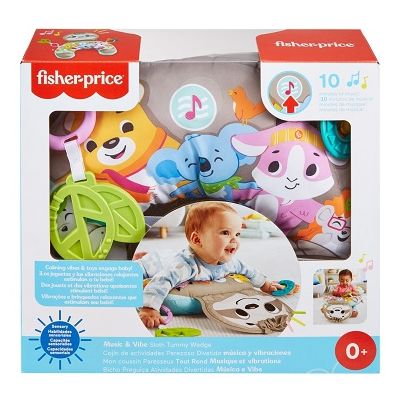 Perna pentru burtica lenes cu muzica si vibratii Fisher-Price este un sprijin pentru stat pe burta cu un prieten lenes mare fosnitor cu pana la 10 minute de muzica si vibratii pentru a ajuta la linistirea bebelusului si la a-l mentine interesat cand sta pe burta. Doua jucarii de activitate repozitionabile inclusiv zornaitori si o jucarie de dentitie fara BPA cresc distractia Ridicandu-si capul si impingandu-se in sus pentru a interactiona cu jucariile ajuta la intarirea muschilor gatului si muschilor profunzi.Specificatii
