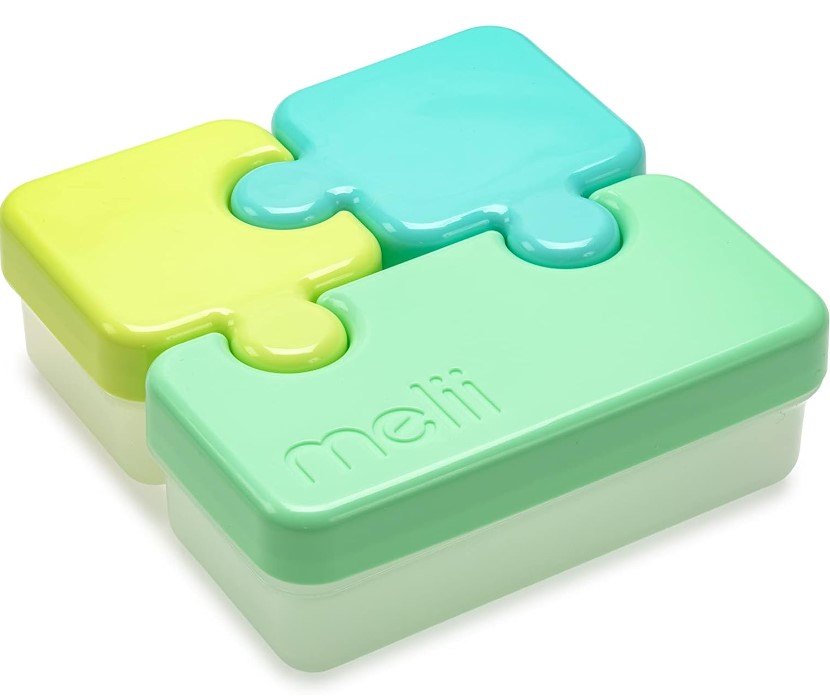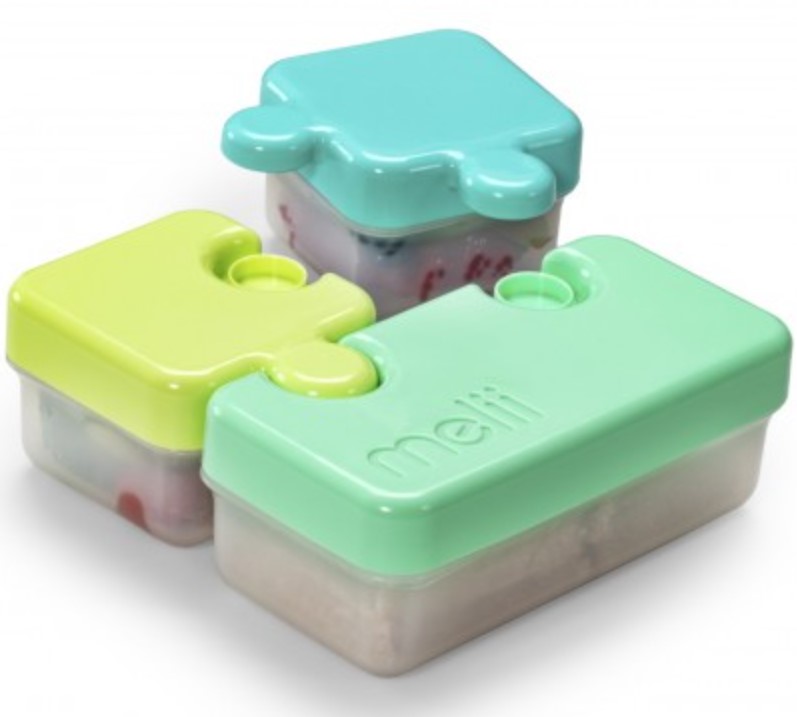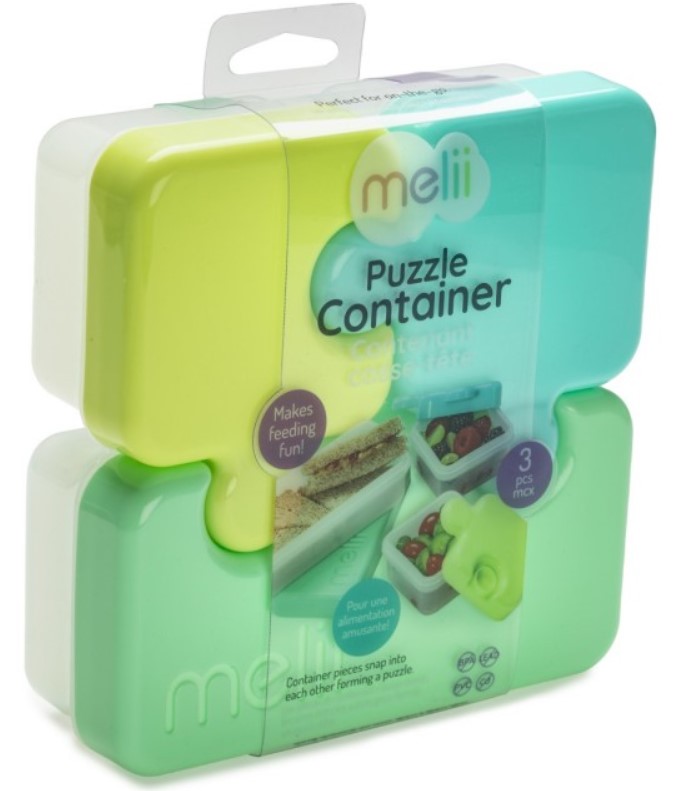 Recipient hrana bebe model puzzle albastru-verde Melii