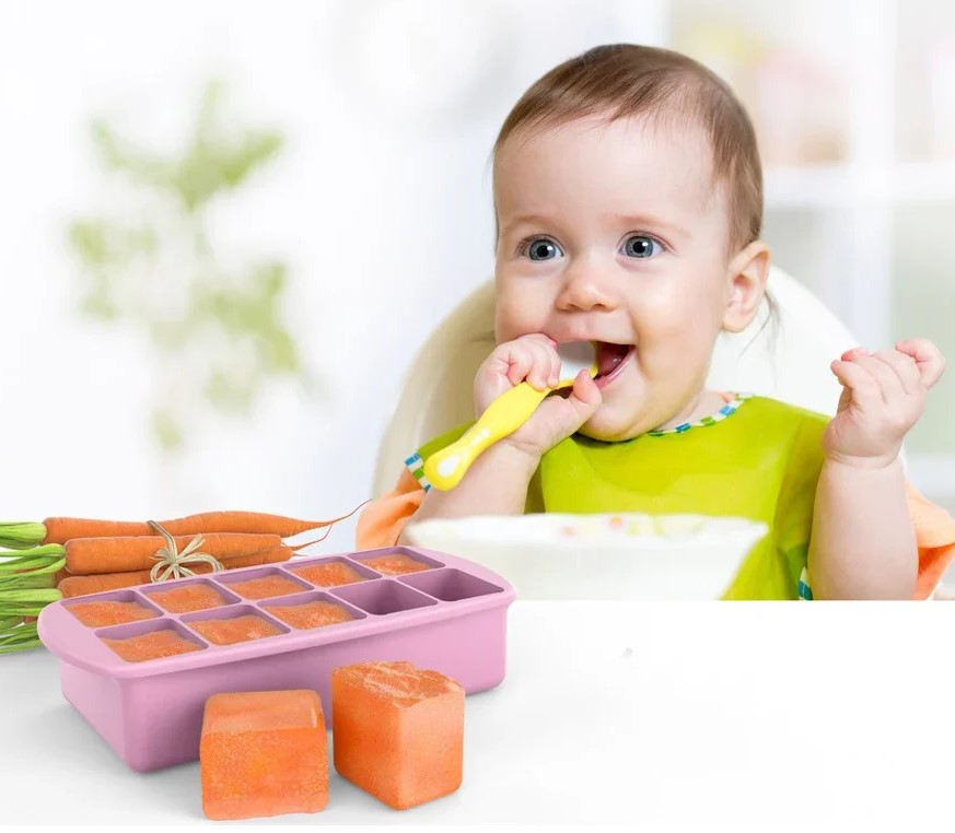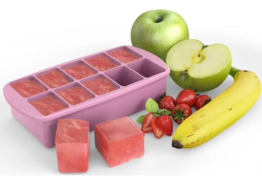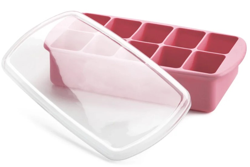 Optimizeaza stocarea alimentelor pentru bebelusi cu tava noastra din silicon cu capac pentru congelator culoare roz. Faciliteaza pregatirea meselor pentru bebelusul tau prin congelarea mancarii facuta in casa in tava noastra de silicon. Acum poti indeparta cu usurinta portiunile congelate datorita designului moale in timp ce capacul din plastic transparent previne varsarea accidentala si mirosurile neplacute din congelator. Dupa faza de piureuri au bebelusului recipientul poate fi folosit ca o tava standard pentru cuburi de gheata. De asemenea puteti gati usor prajiturile preferate in patrate mici prin introducerea tavii de silicon in cuptor dupa indepartarea capacului de plastic. Congelati alimentele in portii perfecte Excelent pentru mancarea bebelusului facuta in casa lapte matern sau portionarea si pregatirea meselor Capacul transparent previne varsarea si mirosurile Silicon alimentar de calitate moale si flexibil pentru o indepartare usoara Potrivit pentru cuptorul cu microunde congelator si masina de spalat vaseSpecificatii