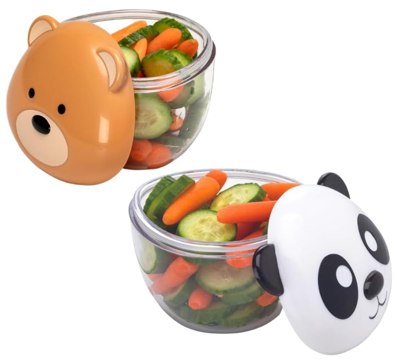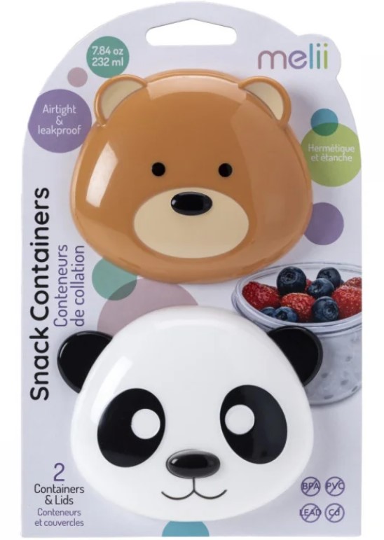 Cu recipientele de gustari in forma de animale Melii copiii pot transporta si depozita gustarile intr-un mod adorabil Acest set de 2 recipiente de mancare cu capac panda si urs de dimensiuni potrivite pentru copii face gustarile distractive si au in acelasi timp un capac ermetic si antipicurare pentru a preveni mizeriile. Recipientele de hrana bebe Melii cu capace panda si urs sunt fabricate dintr-un corp durabil si transparent pentru a evalua usor cat de plin este recipientul iar design-ul faciliteaza deschiderea si inchiderea. Disponibile in 6 modele amuzante cu animale aceste recipiente pentru gustari sunt perfecte acasa in miscare in geanta pentru scutece si chiar pentru gustari portionate intr-o cutie de pranz Capac ermetic si antipicurare pentru a preveni mizeriile Durabil si usor Usor de curatat si sigur in masina de spalat vase pe raftul superior Fara BPA plumb PVC cadmiu ftalati Capacitate de 232 ml 7. 84 fl ozSpecificatii