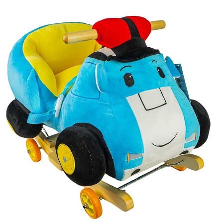 Acest balansoar pentru bebelusi este perfect pentru copilasii care au nevoie de actiune si distractie. Miscarea pendulara a balansoarului linisteste orice bebelas si aduce zambet pe buzele oricarui parinte. Folosirea balansoarului incurajeaza interactiunea parinte-copil cat si jocurile de rol. Balansoarul emite o melodie linistitoare care face balansul atractiv. Caracteristici - Balansoar pentru bebelusi din lemn captusit cu plus cu sunete perfect pentru distractia copilului - Este confectionat din plus si lemn finisat si are forma unei masini de politie - Balansoar pentru bebelusi din lemn functioneaza cu baterii iar prin apasarea unui buton PRESS HERE acesta fredoneaza o melodie linistitoare - Datorita materialelor de calitate din care este confectionat balansoarul poate deveni jucaria favorita a copilului tau - Balansoarul este sigur confortabil iar pentru o siguranta sporita acesta este prevazut cu manere si centura de siguranta - Sezutul balansoarului este foarte comod - Inaltimea calutului balansoar 45 cm - Functioneaza cu baterii de tip AG incluse pentru a functiona trebuie indepartata siguranta de plastic dintre baterii - bateriile se afla intr-un compartiment asigurat cu scai in partea inferioara a balansoarului Avertizare Aceasta jucarie contine piese mici detasabila. In cazul putin probabil al inghitirii unor astfel de piese consultati de urgenta un specialist. Produsul este nou si comercializat in ambalajul original al producatorului. Imaginile de pe site au caracter informativ. Ambalajul trebuie indepartat recuperat si aruncat de catre un adult inainte de a se da spre utilizare copilului. Nu lasati ambalajele produselor la indemana copiilor. Se recomanda utilizarea produsului sub supravegherea unui adult. Produsul poate contine piese mici care se pot inghiti sau inhala de cei mici existand pericolul de sufocare sau nu este potrivita copiilor mai mici de 3 ani. Pastrati instructiunile si etichetele pentru referinte viitoare. Pastrati produsul departe de foc si nu il lasati in preajma temperaturilor ridicate si a umiditatii.Specificatii
