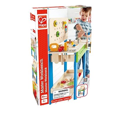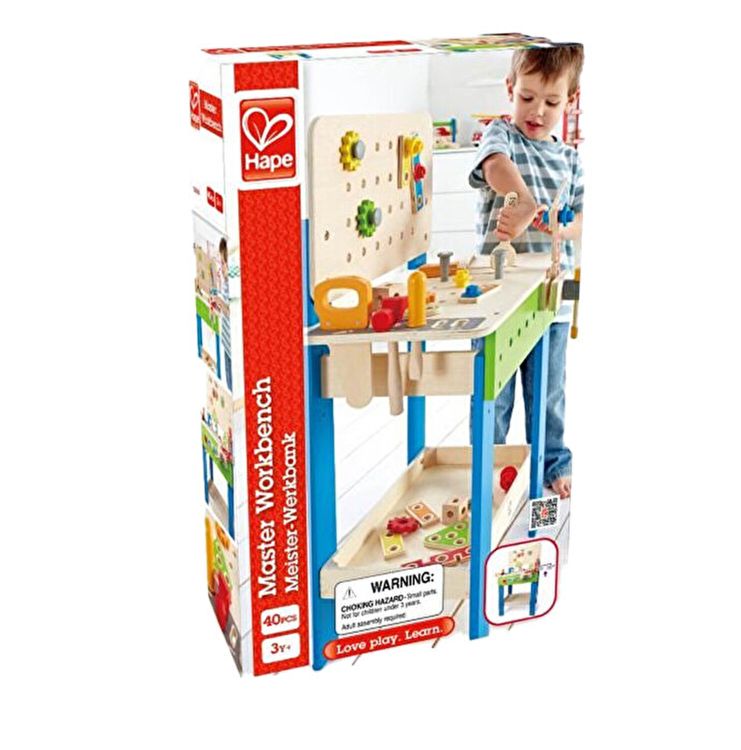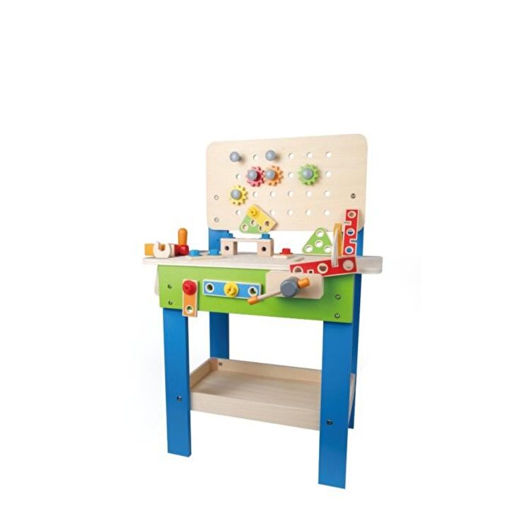 Banc de lucru din lemn, multifunctional, de la Hape, ideal pentru orice copil cu varsta peste 3 ani. Micii constructori vor gasi tot ce le trebuie pentru a se tine ocupati si distrati, cu ajutorul acestui produs.