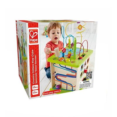 Fabricat din lemn robust cu vopsea pe baza de apa, va rezista la ani de distractie. Denumiti culorile de pe cub. Numarati fiecare dintre creaturi. Sortati piesele dupa forma, culoare sau dimensiune. Folositi cuvinte descriptive precum peste, sub, in jurul, prin, in, afara" pentru a vorbi despre actiunile de joaca.