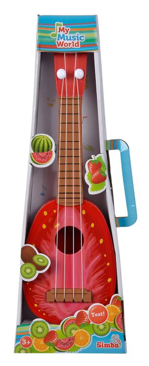 Instrument muzical Ukulele cu 4 corzi de nilon. Tematica designului lor este una haioasa, in forma de capsuna. Instrumentul muzical are o lungime de 36cm.