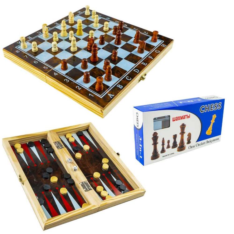 Joc 3 In 1. Sah Table Dame Cutie Lemn 39. 5 x 19. 5 cm