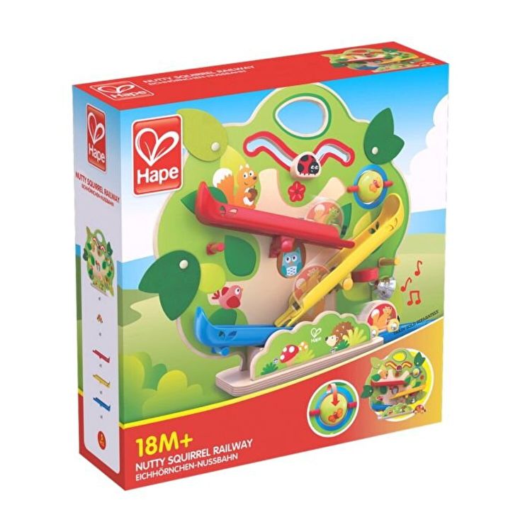 Aceasta veverita este innebunita despre alunecarea pe cursa! Plasati-o in varful copacului si urmariti-o rostogolindu-se pe diferitele rampe si sunand clopotelul din partea de jos. Apoi, explorati celelalte caracteristici distractive. Configurati calea ferata asa cum se arata pe cutie. Asezati caruciorul veveritei in rampa din varful copacului si eliberati-l. Acesta va aluneca si va suna clopotul in partea de jos. Faceti pasarea sa zboare invartind globul si impingeti fericita gargarita de-a lungul cararii sale. Include piesa rotitoare pentru pasari si gargarite.