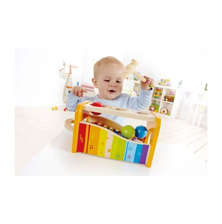 Bebelusii pot alege cu jucaria de lemn cu ciocan de la HAPE daca vor sa loveasca bilele de lemn si acestea sa fie cele care "canta" la xilofon sau daca vor direct sa isi dezvolte pasiunea muzicala cantand la xilofon. Xilofonul de jucarie este una dintre jucariile preferate ale bebelusilor. Bebe descopera si sunetele si culorile in aceasta activitate distractiva.