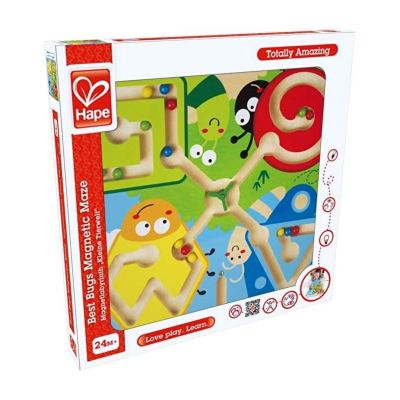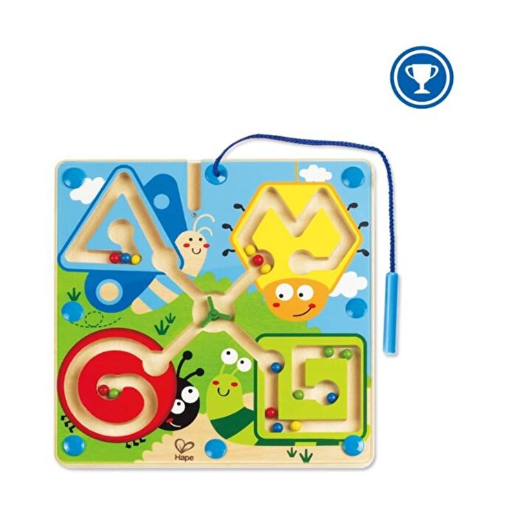 Labirint magnetic ilustrat cu gargarita, bondar, fluture si melc. Jucaria are un maner special, pentru a putea fi transportata usor, iar baghetele magnetice sunt prinse cu snur, pentru a nu se pierde.