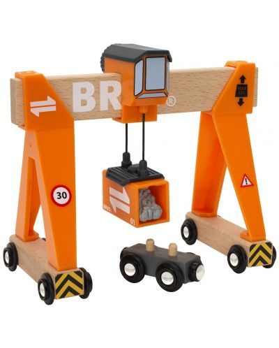 Macara Gantry incarcare marfa trenulete BRIO cu acest set din lemn iti completezi traseul si ii poti da forma dorita. Extindeti-va colectia cu acest uimitor accesoriu de tren din lemn un set perfect pentru a extinde si a crea noi layout-uri. Contine 1 macara Gantry 1 container 1 vagon container 1 incarcatura. Este o jucarie perfecta pentru copiii de la 3 ani in sus. Trenurile motoarele vagoanele si vehiculele BRIO au cuplaje magnetice clasice BRIO pentru conectarea cu usurinta Toate garniturile de tren sinele accesoriile si destinatiile au sina clasica de tren din lemn permitand conectarea usoara intre ele si extinderea lumii BRIO in continua expansiune. Brio este lider mondial in jucarii si accesoriilor din lemn de inalta calitate care incurajeaza joaca creativa si dezvoltarea abilitatilor motorii si cognitive ale copiilor. Jucariile Brio se remarca prin designul lor simplu dar elegant si sunt proiectate sa reziste la utilizare indelungata si la manipularea intensa. Brio incurajeaza joaca libera si creativa. Jucariile lor sunt concepute pentru a oferi copiilor oportunitati ample de explorare si descoperire permitandu-le sa-si foloseasca imaginatia pentru a inventa si crea propriile povesti si aventuri. Gama de produse Brio cuprinde o varietate larga de jucarii si accesorii incluzand seturi de trenulete puzzle-uri jucarii de constructie si multe altele. Aceasta ersitate permite familiilor sa aleaga produse care sa se potriveasca nevoilor si preferintelor copiilor lor.Specificatii