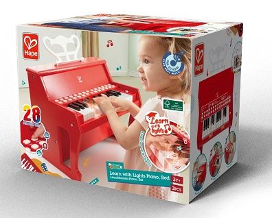 Pianul electronic cu 25 de clape si scaunul confortabil va ajuta sa le faceti introducerea celor mici in marea lume a muzicii. Primele piese pot fi invatate cu usurinta cu ajutorul clapelor luminate. Sunete de instrumente multiple 6 melodii usor de cantat si 8 batai de tobe. Datorita luminii clapelor primele piese pot fi redate fara cunostinte de muzica. Copilul devine rapid mai increzator si poate canta una dintre cele 6 melodii frumoase si poate alege una dintre cele 8 batai de tobe. Propriile tale piese muzicale pot fi inregistrate si redate. Jucariile sunt realizate din lemn folosind materiale ecologice vopsite in culori atragatoare cu vopsele nontoxice care depasesc cele mai inalte si stricte standarde internationale de siguranta si calitate precum EN71 ISO9001 ASTM F963 si altele. De multi ani Hape a creat jucarii fantastice de inalta calitate folosind materiale ecologice si durabile fiecare produs fiind atent proiectat pentru a stimula abilitatile senzoriale fizice si emotionale. Atentie Contraindicat copiilor mai mici de 3 ani. Jucaria produsul poate contine piese mici care se pot inghiti sau inhala existand pericolul de sufocare. Nu lasati ambalajele jucariilor produselor la indemana copiilor. Indepartati orice ambalaj al jucariei produsului inainte de a da jucaria produsul copilului. Va rugam sa supravegheati copilul in timp ce se joaca foloseste acest produs. Pastrati instructiunile si etichetele pentru referinte viitoare. Pastrati jucaria produsul departe de foc feriti jucaria produsul de temperaturi ridicate si umiditate.Specificatii