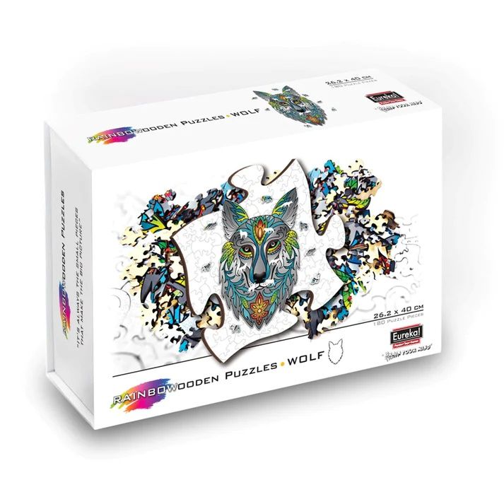 Puzzle din lemn multicolorat - Lup contine 180 piese puzzle din lemn multicolorate iar fiecare piesa de are o forma unica. Lupul simbolizeaza unitatea si armonia. Blana sa moale creeaza o senzatie de protectie si caldura. Descopera numeroase alte animale in timp ce unesti fiecare piesa. Testeaza-ti abilitatile si rasfata-ti simturile. Nu vei regreta. Puzzle-ul are o foarte buna calitate si a fost realizat cu acuratete lucrarea este aproape de bijuterii necesitand o precizie extrema atunci cand dau elementelor liniile cerute. Vopselele sunt aplicate pe lemn prin imprimare UV motiv pentru care vor rezista mult timp pastrandu-si saturatia. Varsta recomandata 7 ani Nr. jucatori 1.Specificatii