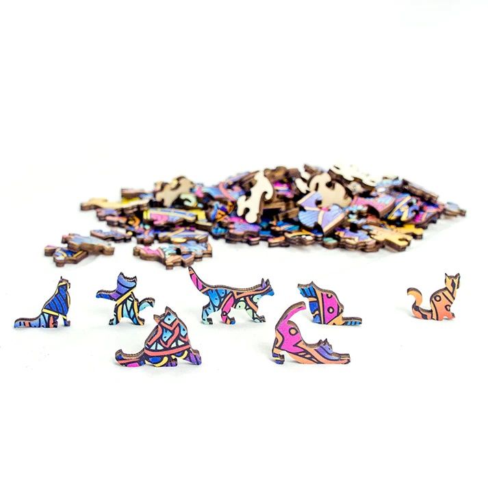 Puzzle din lemn multicolorat Pisica 99 piese