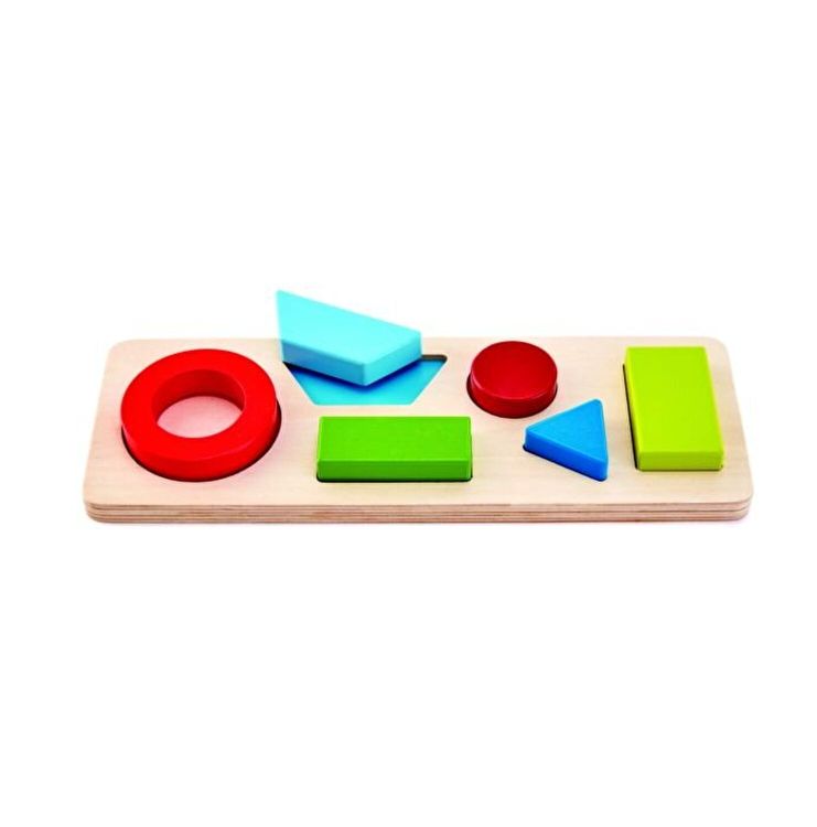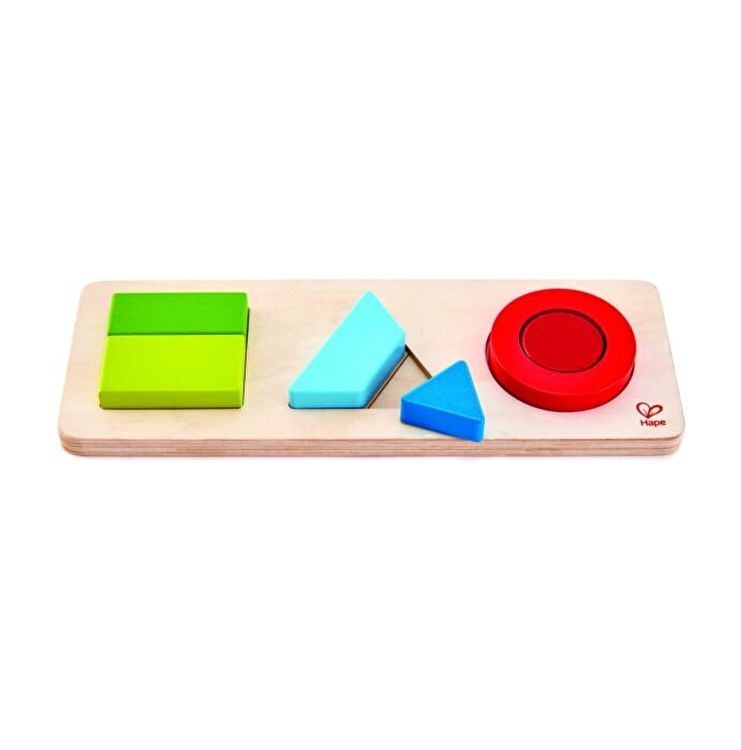 Cu doua puzzle-uri separate, acesta este un joc distractiv, colorat, cu doua niveluri diferite de dificultate. Dupa ce ati rezolvat primul joc bazat pe culori, intoarceti puzzle-ul si incercati sa rezolvati jocul mai dificil, bazat pe forma. Pe de o parte, piesele puzzle-ului pot fi aranjate in functie de forma si culoare, cu diferite nuante de aceeasi culoare in timp ce pe cealalta parte a bazei formele pot fi puse impreuna pentru a forma un patrat, un triunghi si un cerc. Formele geometrice includ un cerc deschis, un cerc complet, doua dreptunghiuri, un triunghi si un trapez.