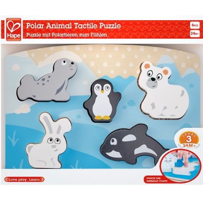 Este frig in Arctica si animalele au nevoie de haine speciale pentru a se incalzi Scoateti piesele acestui puzzle pentru a simti haina focii pinguinului ursului polar iepurelui arctic si orca. Scoateti piesele puzzle-ului din gaurile lor. Atingeti tesaturile texturate dedesubt pentru a intelege cum se simte haina fiecarui animal. Puneti animalele inapoi in locurile potrivite pentru a finaliza puzzle-ul. Asezati piesele groase ale puzzle-ului la capatul lor pentru a crea scene diferite si a juca scenarii. Jucariile sunt realizate din lemn folosind materiale ecologice vopsite in culori atragatoare cu vopsele nontoxice care depasesc cele mai inalte si stricte standarde internationale de siguranta si calitate precum EN71 ISO9001 ASTM F963 si altele. De multi ani Hape a creat jucarii fantastice de inalta calitate folosind materiale ecologice si durabile fiecare produs fiind atent proiectat pentru a stimula abilitatile senzoriale fizice si emotionale. Atentie Nu lasati ambalajele jucariilor produselor la indemana copiilor. Indepartati orice ambalaj al jucariei produsului inainte de a da jucaria produsul copilului. Va rugam sa supravegheati copilul in timp ce se joaca foloseste acest produs. Pastrati instructiunile si etichetele pentru referinte viitoare. Pastrati jucaria produsul departe de foc feriti jucaria produsul de temperaturi ridicate si umiditate.Specificatii