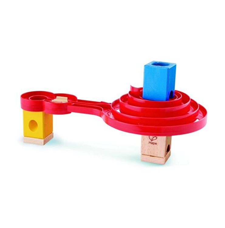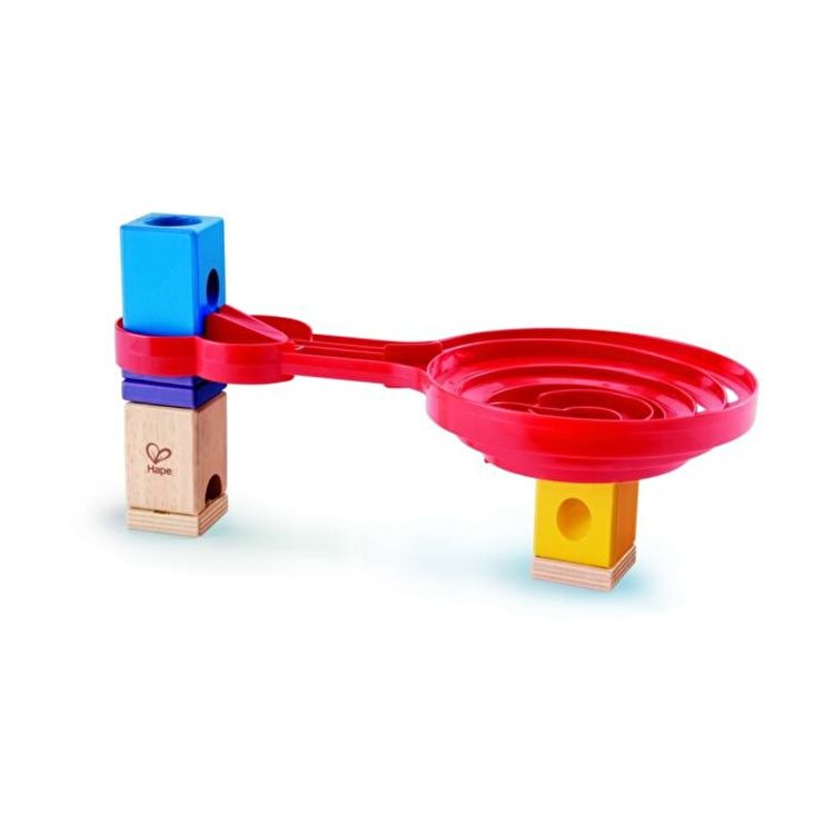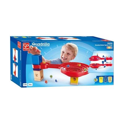 Obtineti de doua ori invartirea din setul dvs. Quadrilla cu aceasta uimitoare spirala dubla. Atat laturile concave, cat si cele convexe prezinta piste spiralate, dubland potentialul de joc. Cand spirala are fata concava in sus, bila va aluneca de la brat in inelul exterior si va cobori rapid spre centru. Cu partea convexa in sus, fluxul de bila este inversat. O bila aruncata in centru se deplaseaza rapid din centru catre inelul exterior si brat. Setul include o spirala pe doua fete, trei blocuri de distributie din lemn, un obturator de gauri, un accelerator, doua inele stabilizatoare si doua reglaje de inaltime, opt bile.