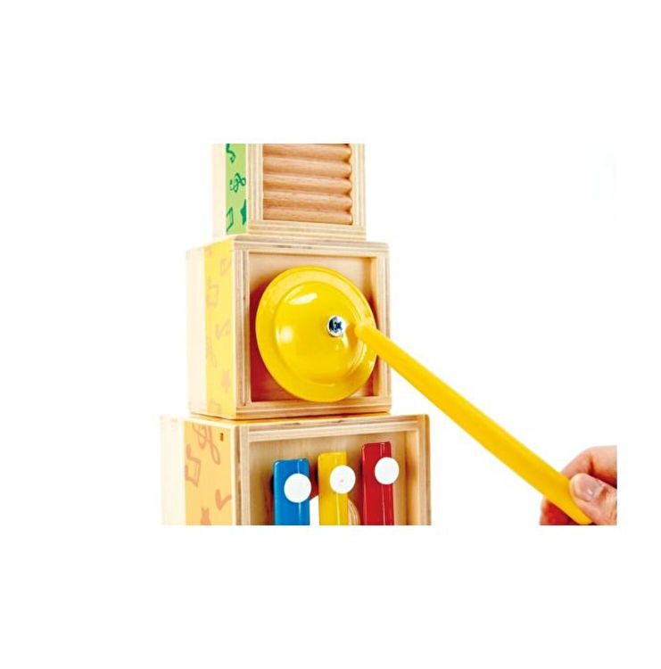 Cu acest set muzical inovator si variabil, chiar si copiii mici pot crea muzica si explora melodiile. Blocurile individuale pot fi asamblate cu usurinta in orice mod si exerseaza culoarea si formele Setul din lemn include blocuri de muzica individuale cu diferite optiuni de joc, cum ar fi un clopot sau mini xilofon. Setul contine un total de 6 parti. Copiii pot asambla blocurile in functie de nevoile lor.