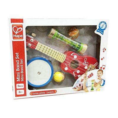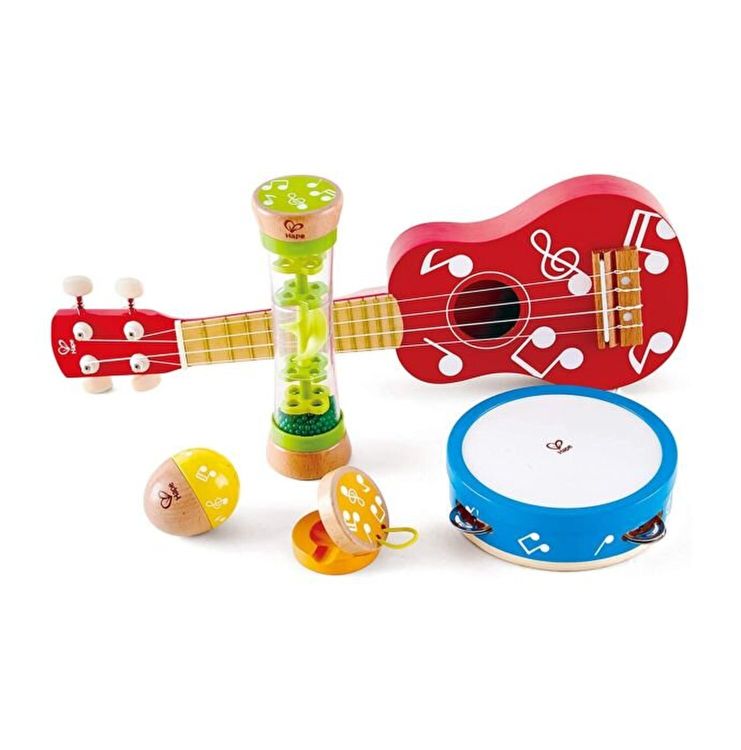 Incepeti sa va creati propria muzica cu acest set de instrumente pentru incepatori! invata sa canti tu la tamburina, clapeta, apoi adu-ti prietenii impreuna si formeaza o trupa. Exploreaza sunetele pe care le face fiecare instrument. Folositi instructiunile pentru a afla elementele de baza ale cantarii fiecarui instrument. Pe masura ce va imbunatatiti, aduceti-va prietenii impreuna pentru a canta intr-o trupa. Set din cinci piese. Optimizat pentru joaca de catre copii mici si copii mai mici. Corzile din nailon sunt usoare pentru mainile.