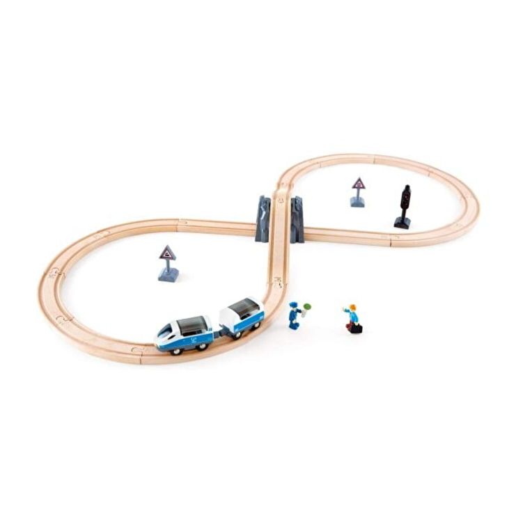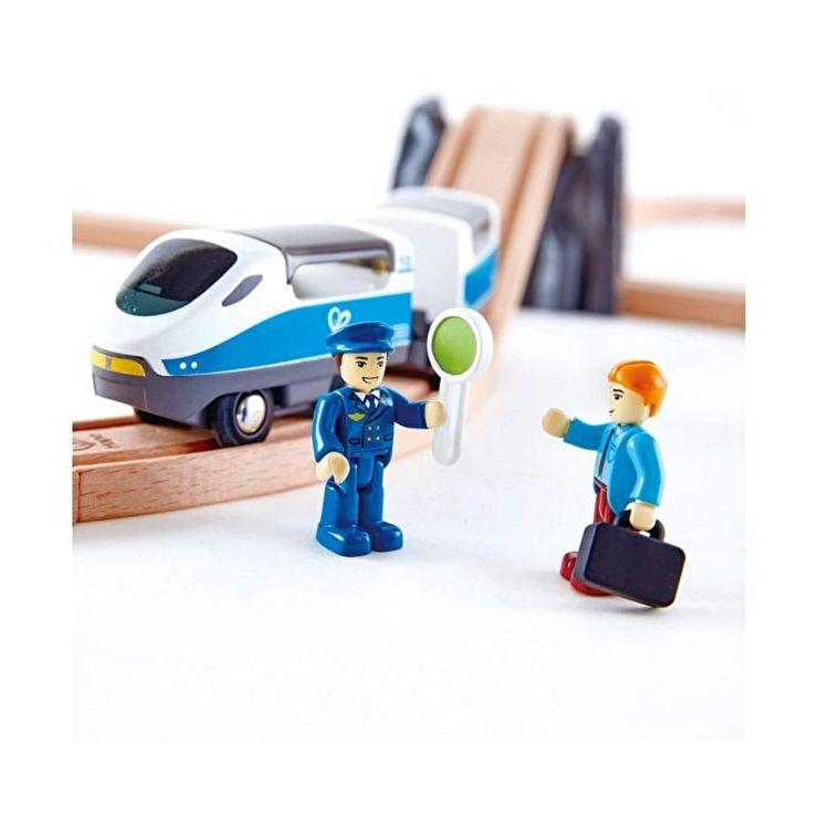Rosu inseamna opreste, verde inseamna pleaca! Invata copiii despre semnalele trenului cu acest set trenulet pasageri cu traseul in forma de 8. Contine un trenulet de pasageri rapid, un controlor, un pasager si semnalul cu care opreste trenuletul si ii permite sa plece dupa aceea. incarcati pasagerul si bagajele acestuia in tren si conduceti in jurul caii ferate. Lucratorul feroviar poate conduce trenul sau poate sta afara si flutura semnul de siguranta. Opriti trenul setand semnalul de siguranta pe rosu. Include sinele de cale ferata, o locomotiva si un vagon, 2 semne de siguranta si un controlor feroviar.
