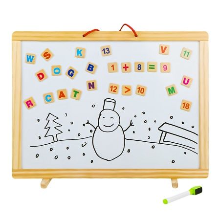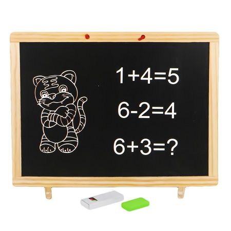 - Setul contine tablita de scris cu doua fete litere cifre semne matematice forme geometrice marker special cu radiera pentru el creta burete de sters pentru creta - Tablita are sistem de prindere pentru perete dar se poate folosi si pe orizontala capacul markerului este magnetic se poate pastra pe tablita. Avertizari - Contraindicat copiilor mai mici de 3 ani - Jucaria poate con ine piese mici care se pot inghiti sau inhala existand pericolul de sufocare - Nu lasati ambalajele jucariilor la indemana copiilor - Indepartati orice ambalaj al jucariei inainte de a o oferi copilului - Va recomandam sa supravegheati copilul in timp ce se joaca cu produsul - Pastrati instructiunile si etichetele pentru referinte viitoare.Specificatii